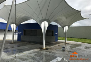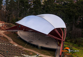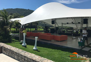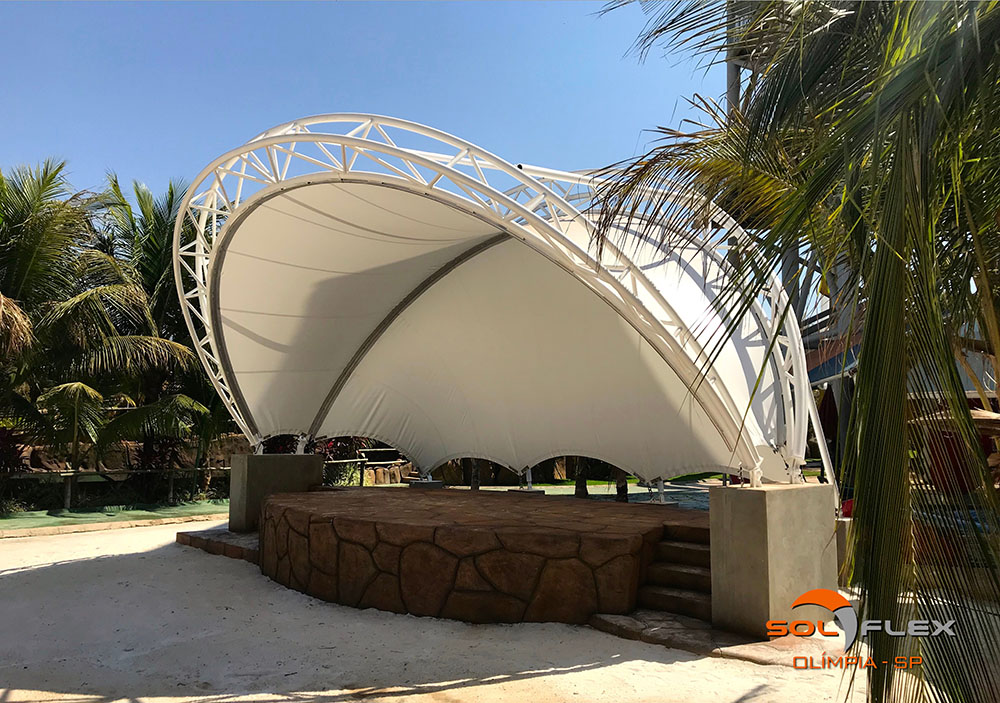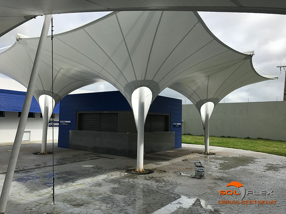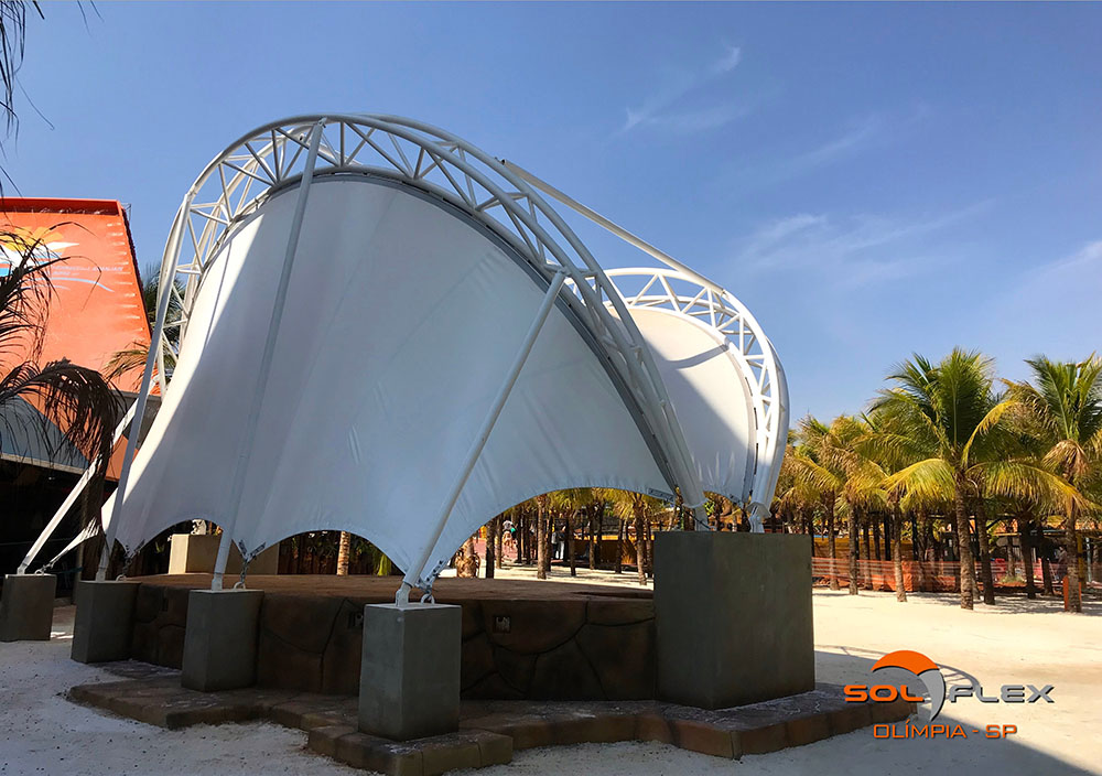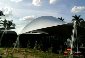 E é exatamente essa versatilidade geométrica que, aliada à leveza, faz das lonas tensionadas uma perfeita solução para a cobertura dos mais variados tipos de ambientes, tais como: shopping centers, estádios e quadras poliesportivas, espaços públicos e de eventos, feiras públicas, palcos, clubes e hotéis, concessionárias e estacionamentos de veículos, anfiteatros, portos e marinas, universidades, igrejas, etc.