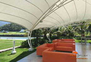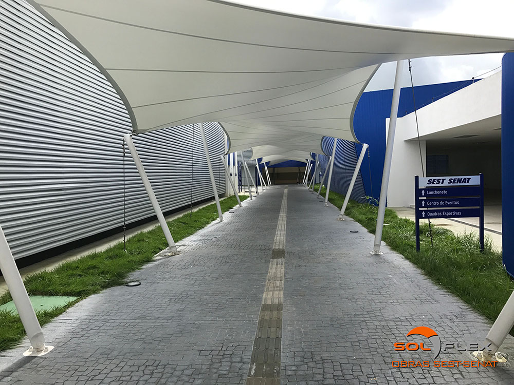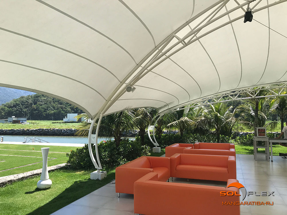 Por permitir uma infinidade de formas geométricas, as lonas tensionadas se integram com mais harmonia ao contexto arquitetônico paisagístico e ainda dão um toque de sofisticação e requinte ao ambiente.